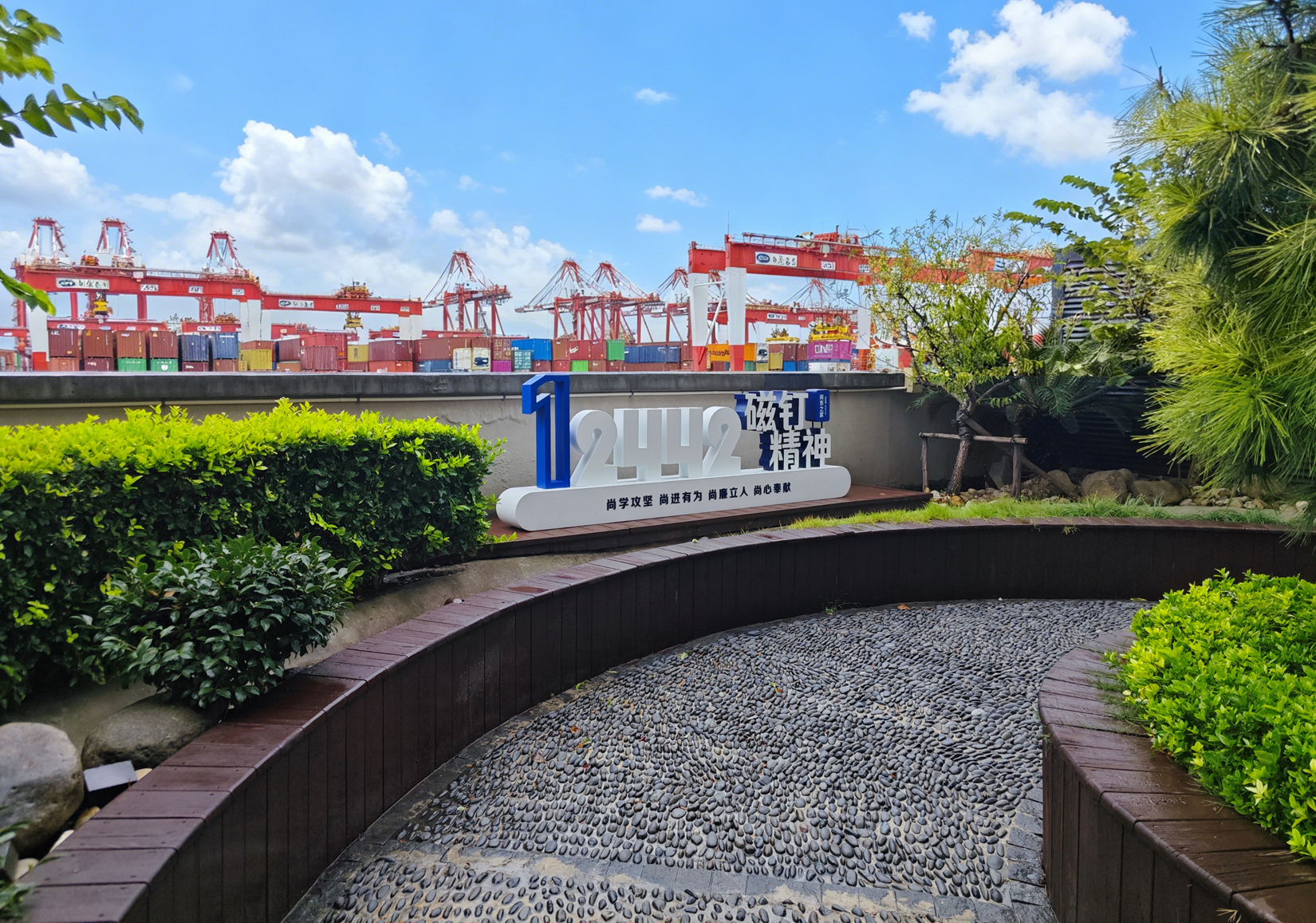 晨光漫过洋山四期,六方立牌静驻于公司的草坪、连廊、转角。它们以艺术之形,承载精神之魂,在寻常工作场景中,静诉着不寻常的企业理想,是“五彩尚东”文化血脉的生动注脚。