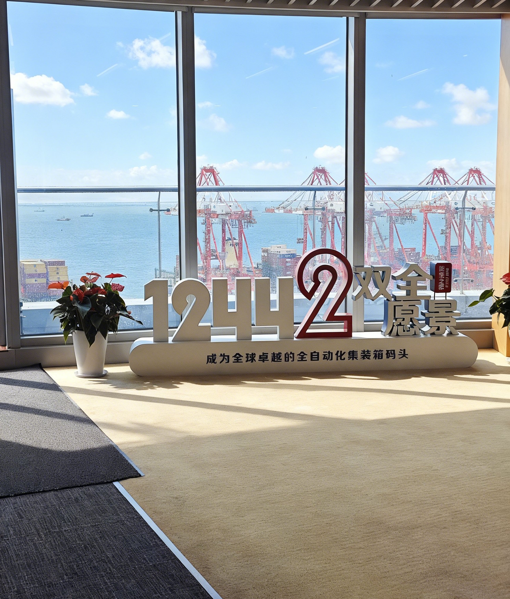 中控塔顶楼正中,是那亮眼的“效率红”,炽热如焰,昂扬如歌。它代表着目标、行动与决心,直指洋山四期的“双全愿景”——成为全球卓越的全自动化集装箱码头。这红色,是催征的战鼓,擂响提升核心竞争力与行业引领力的强音,凝聚全员之心,共赴那片广阔的宏伟蓝图。